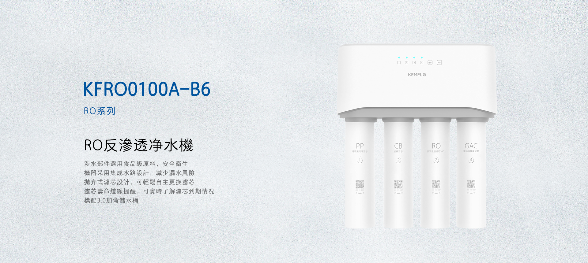 - KEMFLO牌KFRO0100A-B6型反滲透凈水機凈水產(chǎn)水率符合GB 34914-2021《凈水機水效限定值及水效等級》標準的3級要求