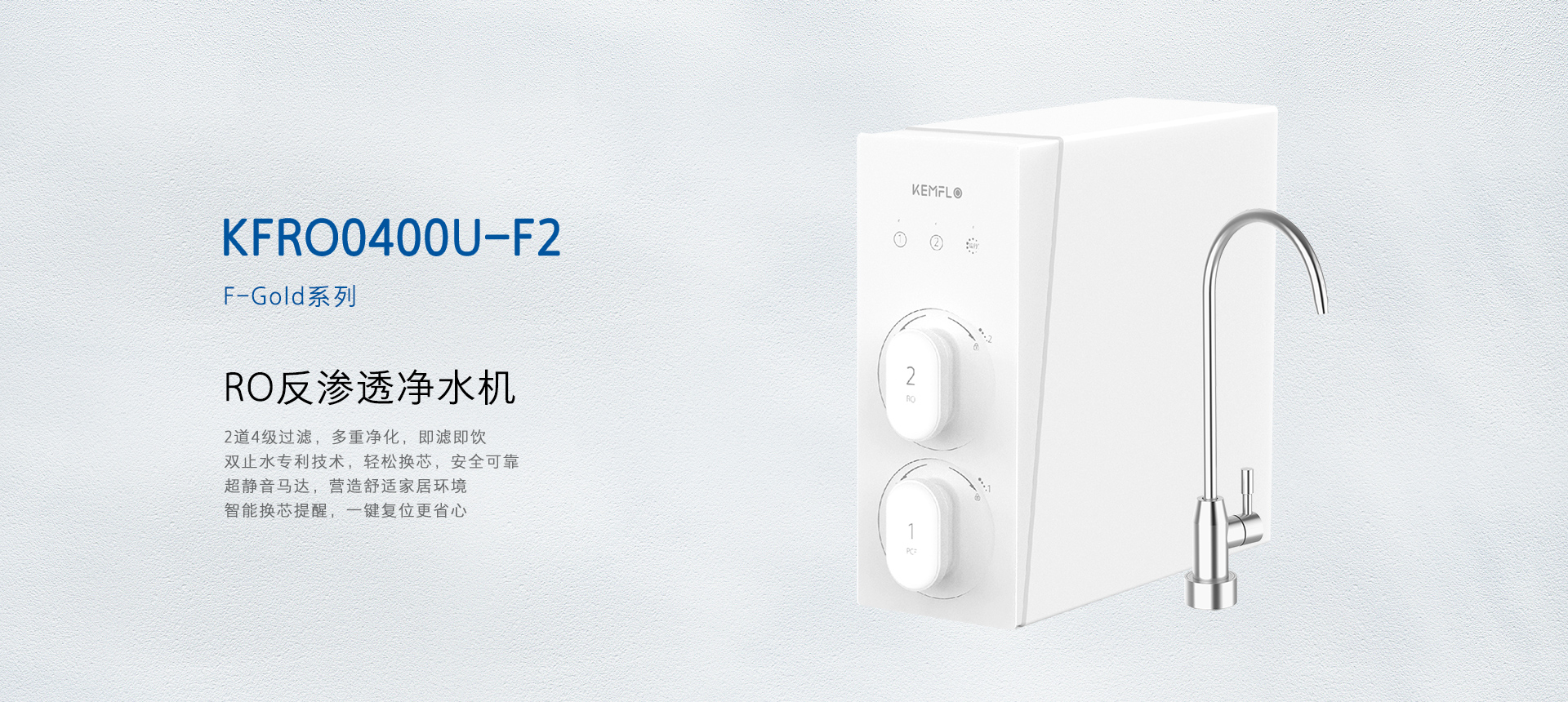 - KEMFLO牌KFRO0400U-F2型反滲透凈水機(jī)凈水產(chǎn)水率符合GB 34914-2021《凈水機(jī)水效限定值及水效等級(jí)》標(biāo)準(zhǔn)的1級(jí)要求